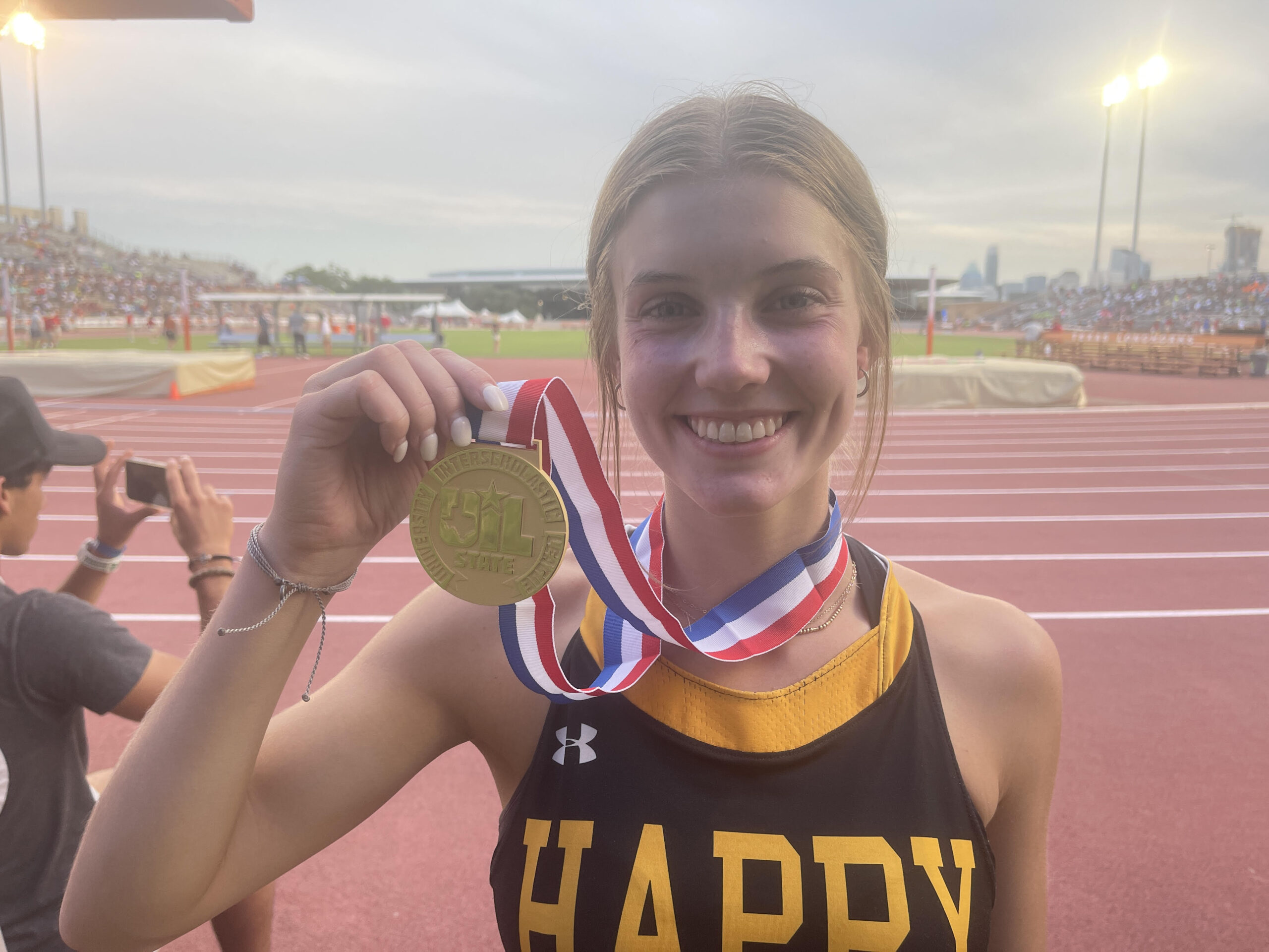 Performance: Berry was electric clocking a season-best time of 58.90 to end her high school career with a gold medal. Berry even keeps the Cowgirls tradition alive in this race. Since 2017 a Happy girl’s athlete has won the 400 meter run. Rylee Johnson won three straight from 2017-2019. After the COVID-19 pandemic cancelled 2020, Rylee’s younger sister, Kenli, won gold in the 400 in 2021, followed by Berry on Saturday night.