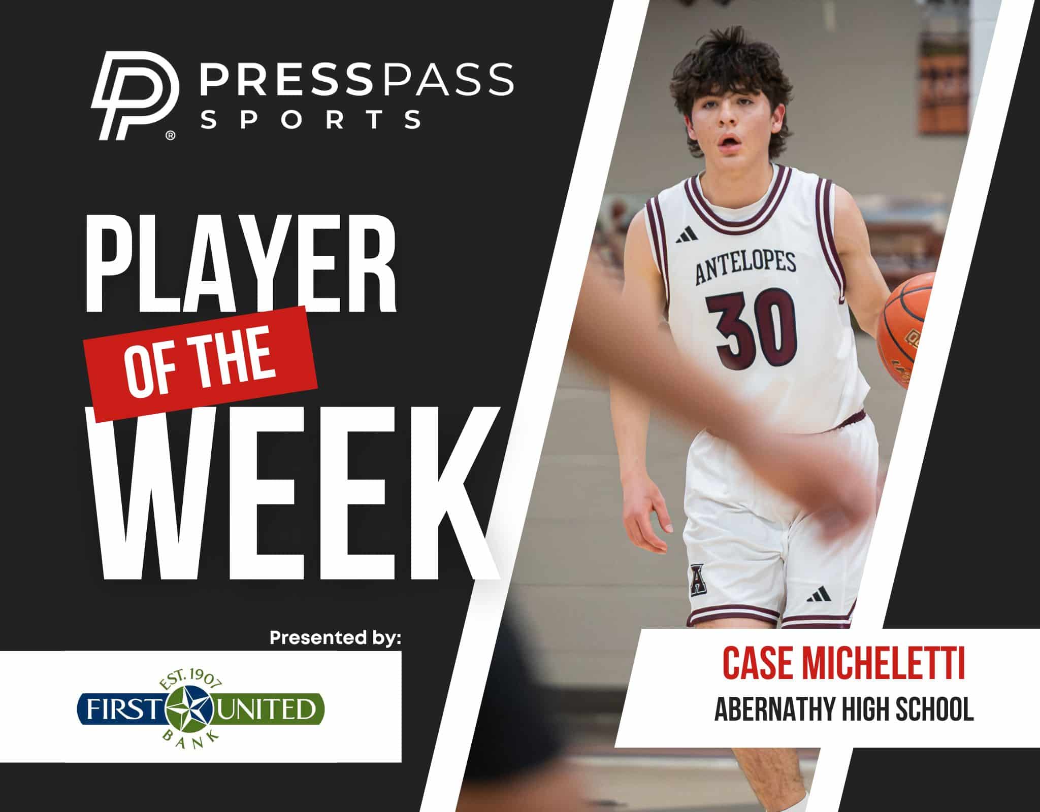 On the court: The sophomore sharpshooter has been piling up the points all season and that continued during a pair of District 4-2A wins against Tahoka and Floydada last week. Against the Bulldogs, Micheletti went for 31 points on 13-of-28 shooting to go with five rebounds, three assists and three steals. In the win against the Whirlwinds, Micheletti poured in 33 points on 13-of-19 shooting from the floor with three boards, four assists and four steals.