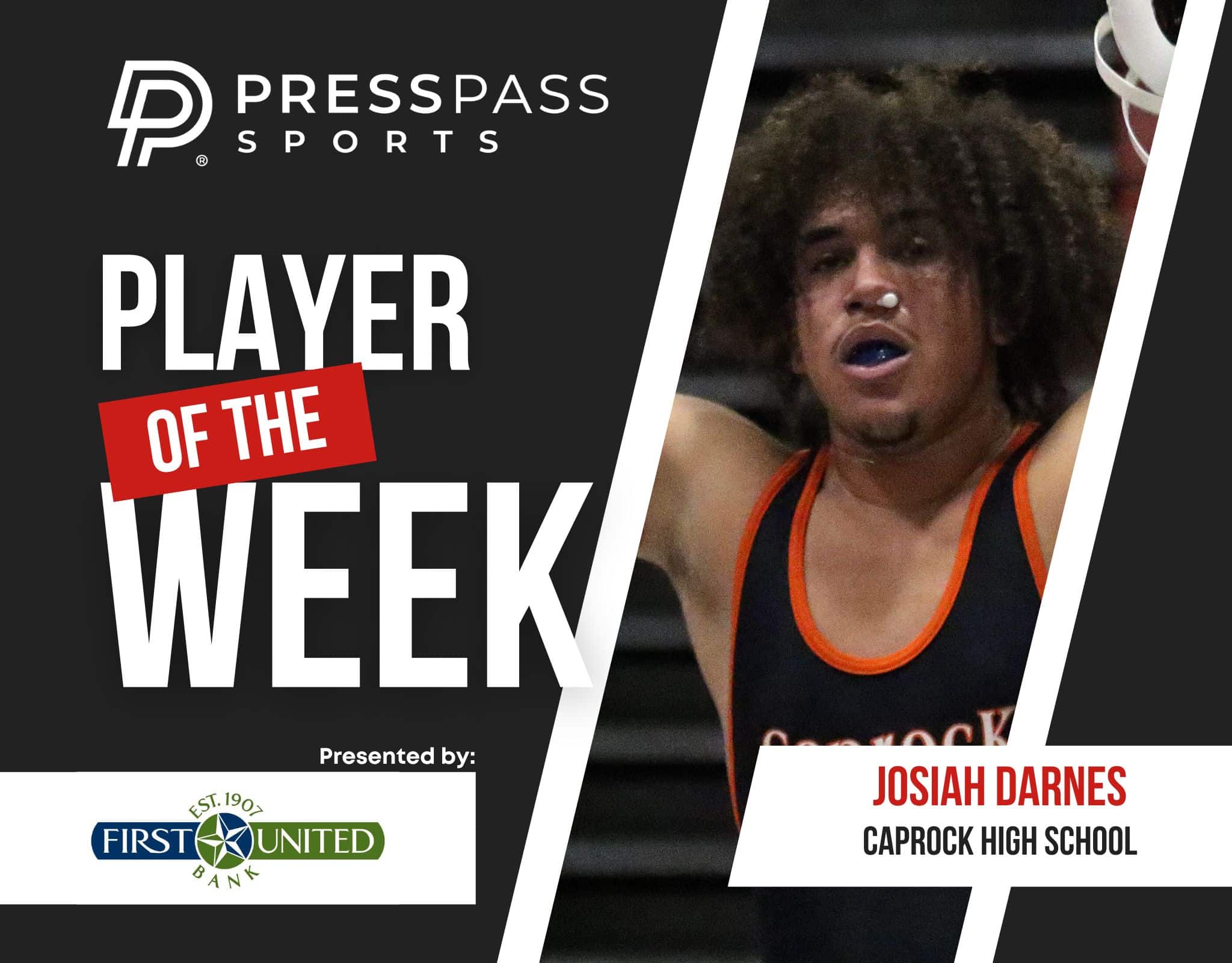 On the mat: Seeded third in the 285 lbs. weight class at the UIL District 2-5A Tournament, held last weekend at Tascosa High School Activities Center, Darnes captured two pinfalls to advance to the title match. In the 285 lbs. championship, Darnes handled Palo Duro’s Anvial Acosta via a 10-1 decision. Darnes’ dominant victory allowed the Caprock boys wrestling team to leapfrog Amarillo High and Dumas to capture a team championship in the tournament’s final moments.