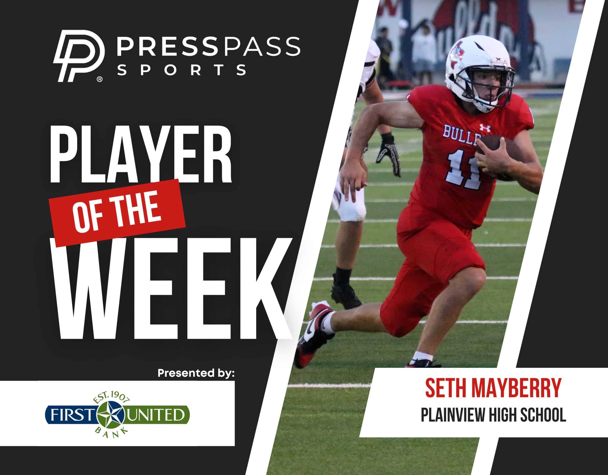 On the field: Plainview put a shock into the state last Friday beating Lubbock-Cooper 37-22 in a District 2-5A Division II opener. Mayberry, who holds every school passing record over his four years as a starter, had another incredible performance, as the senior torched the Pirates defense. Mayberry used his ability to get out of the pocket carrying the ball 25 times for 185 yards with a touchdown. Through the air, Mayberry diced up the Cooper secondary once more going 16-of-26 for 262 yards passing with three more scores.