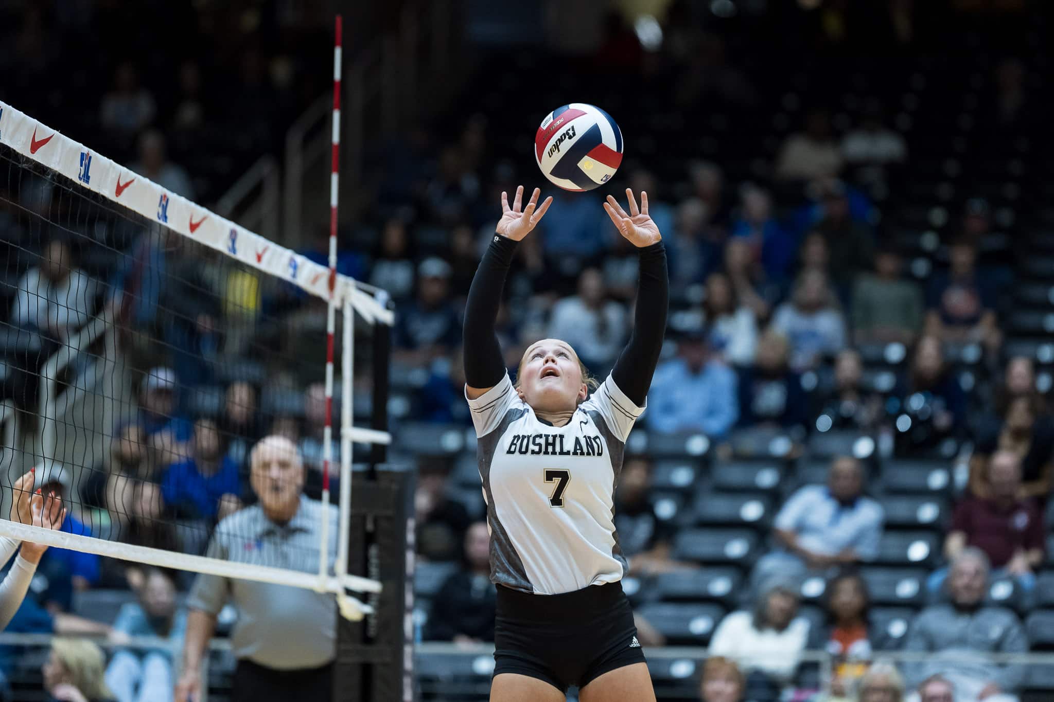 Sophomore Berklee Billington had a great match for Bushland in her first significant action on the bright lights of state. Billington led the Lady Falcons with 18 kills on 41 attacks for a hitting percentage of .317. Billington also had 11 digs for a double-double. Jaida Scott and Morgan Eberly combined for 32 assists, senior Ava Permenter ended her stellar career with 18 digs and Laynee Adams pounded down six kills with 11 digs.