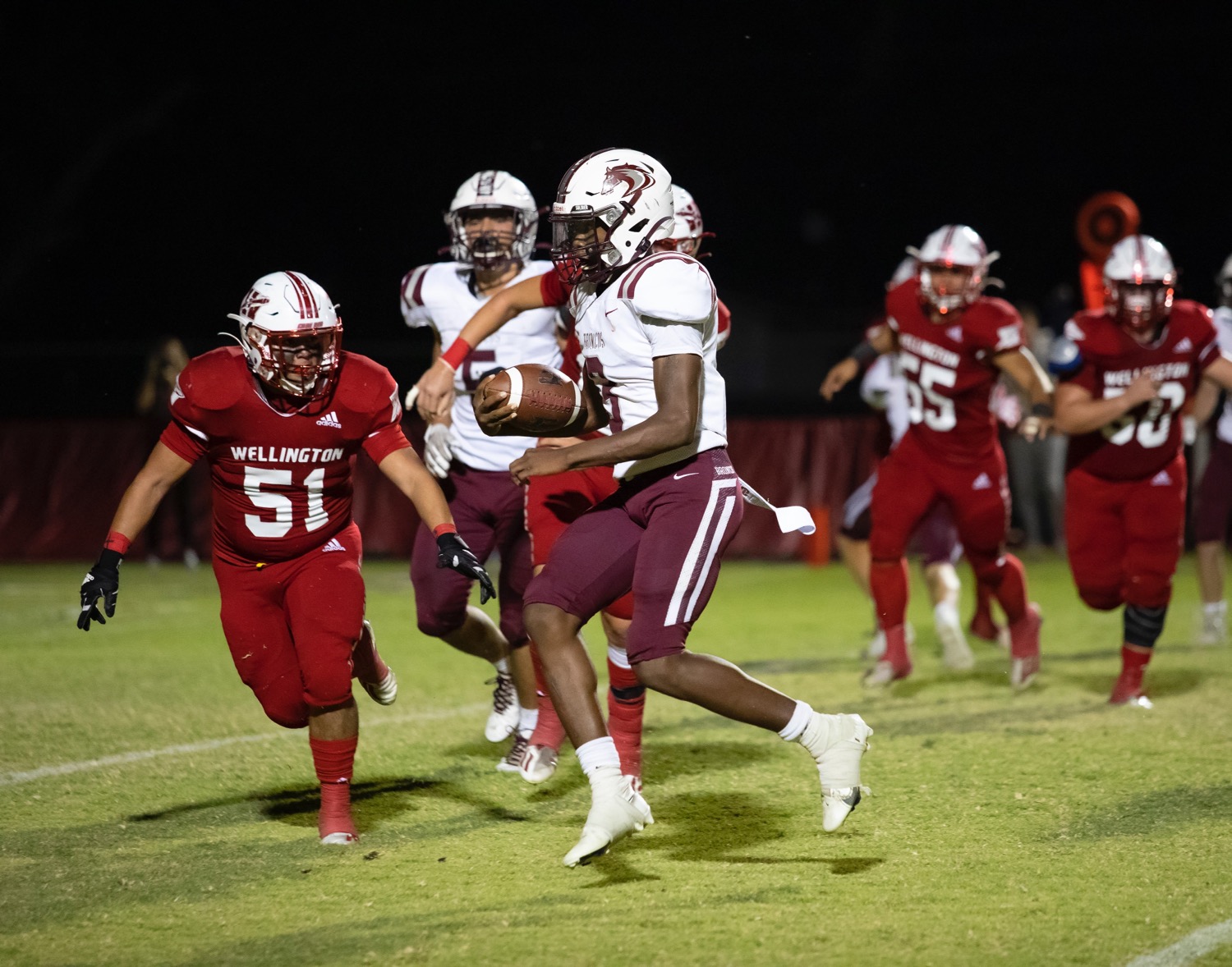 Clarendon’s Jmaury Davis finds running room against Wellington during a District 4-2A Division II contest at Powell Field in Wellington. [Lace Taylor/ Press Pass Sports]