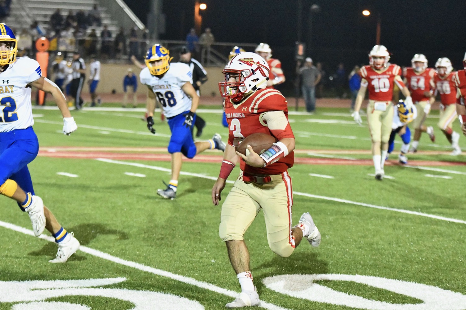 The end of the first quarter had Sunray in the lead 12-6 after a pair of Tate DeBord passing touchdowns. In the second quarter, the Comanches exploded for 22 points. Standout QB Avian Cruz got it started with his feet scoring on his second rushing touchdown of the night, and then threw a dime over the middle for a 78 yard touchdown to Jayden Harvey.