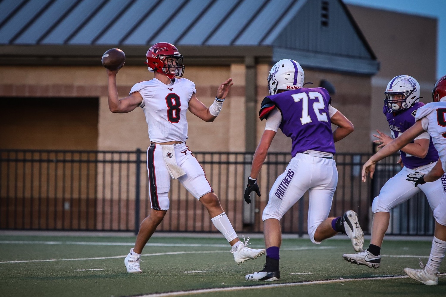 What a night it was for Bushland excelling on the offensive and defensive ends of the ball. Coleman Junell, the Bushland QB, hardly missed a pass completing 19-of-23 passes for 405 yards and four touchdowns. Junell picked up another score on the ground to go with 50 more yards rushing. The Falcons defense was just as impressive holding a the Matadors offense to only one score on the night.