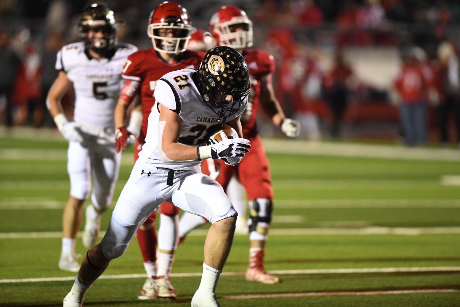 It was a tougher game than maybe some fans expected but Canadian was able to pull away from Coahoma for a 49-14 victory in the Class 3A Division II area round Friday night at Greg Sherwood Memorial Bulldog Stadium in Plainview.
