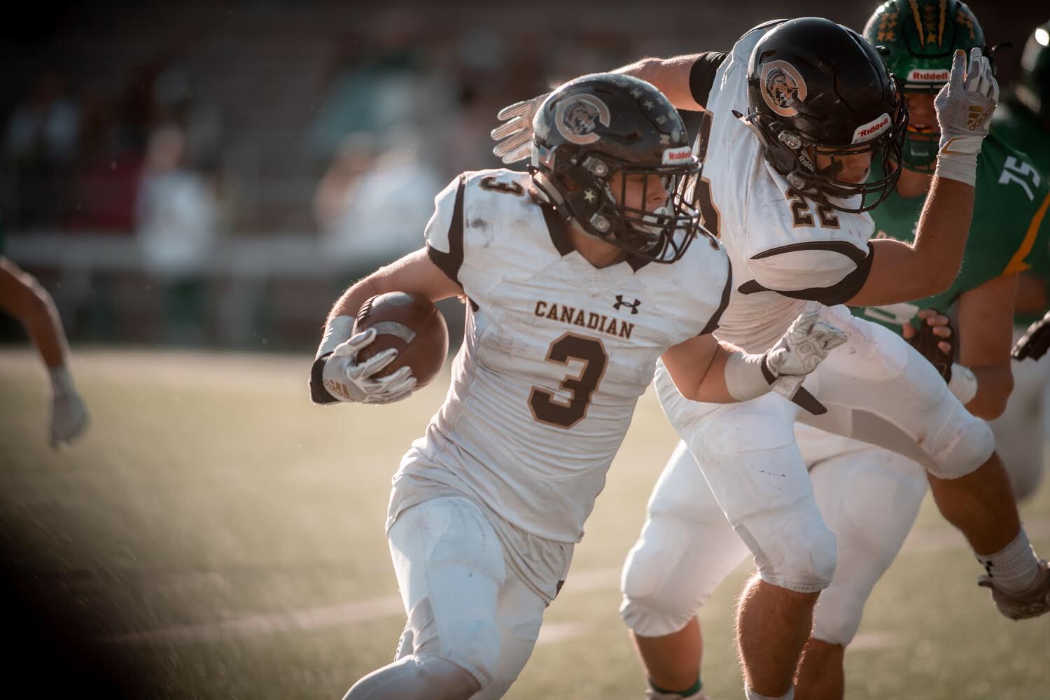The Canadian defense locked down an Idalou offense that was averaging over 45 points a game and 330 rushing yards per contest. Canadian limited Idalou to one score in the third quarter, only 200 rushing yards and forced five turnovers, including a 56 yard pick-six by freshman Camren Cavalier.