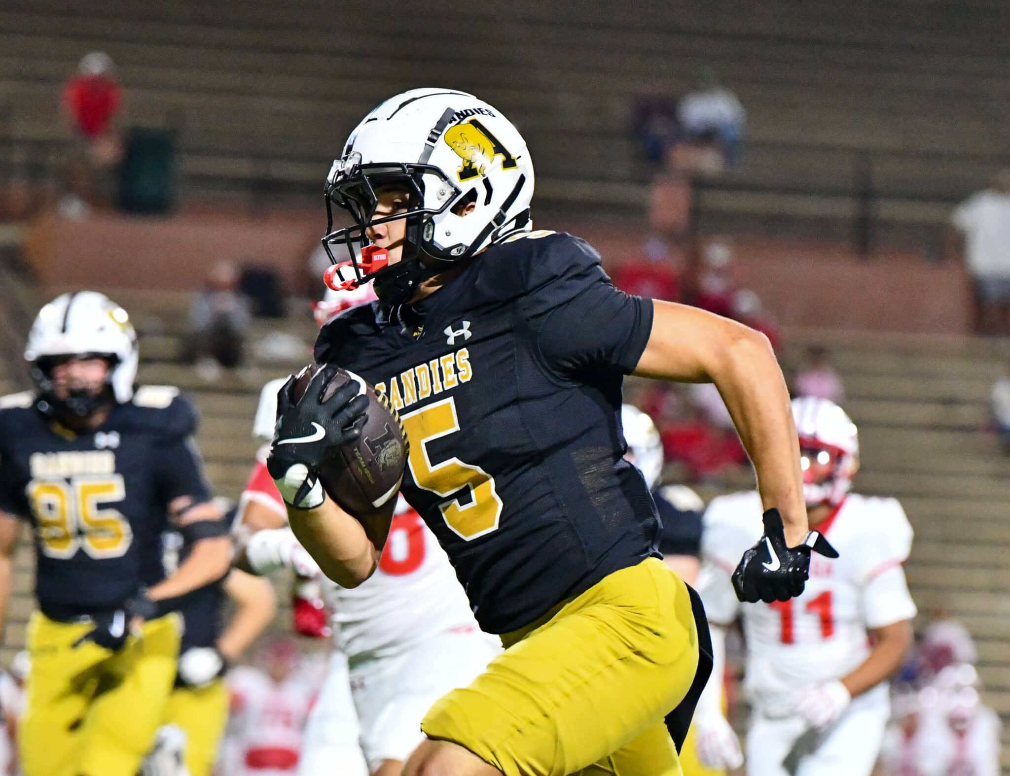 Amarillo High was hardly one-dimensional offensively. Jude Dunavin ran for 153 yards and three touchdowns on only 10 carries, as the Sandies ran for 252 yards.