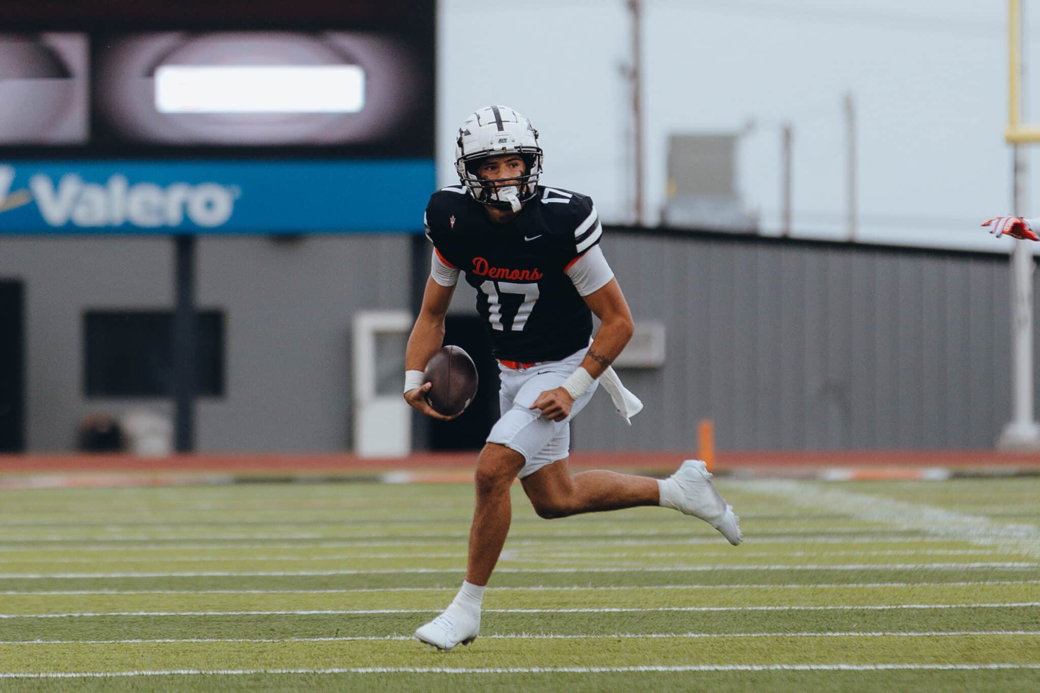 Two scoring passes went to Chris Jimenez. The Demons also ran for 225 yards.