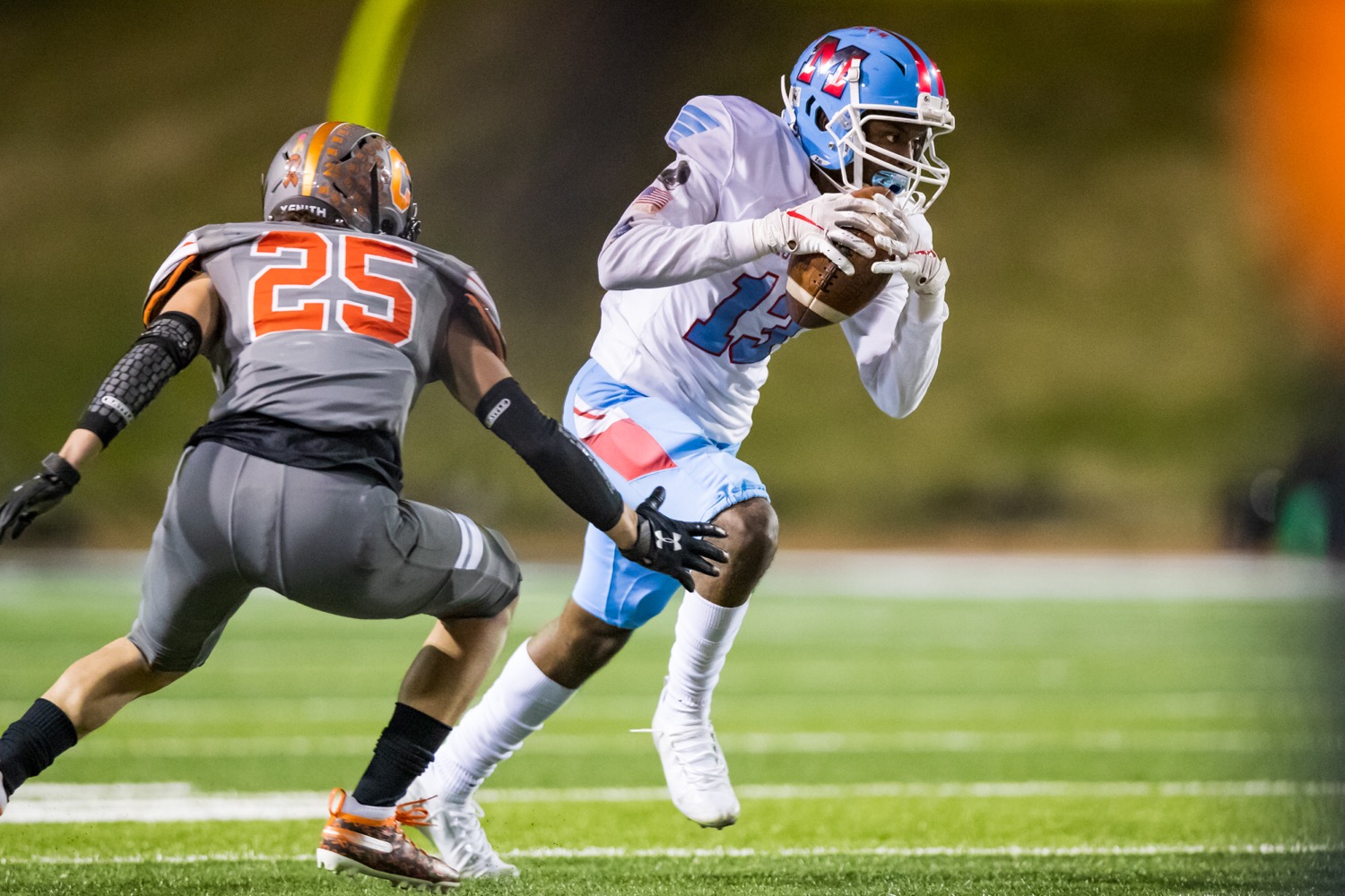 Monterey receiver Tyrie Tipton runs after a catch against Caprock at Dick Bivins Stadium on Friday night. [John Moore/ Press Pass Sports]