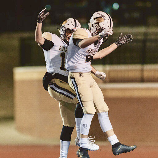 Amarillo High’s Caden Mincey and Cooper Paetzold celebrate after a touchdown on Friday night against Lubbock High. [Ikechukwu Dike/ Hub City Preps]