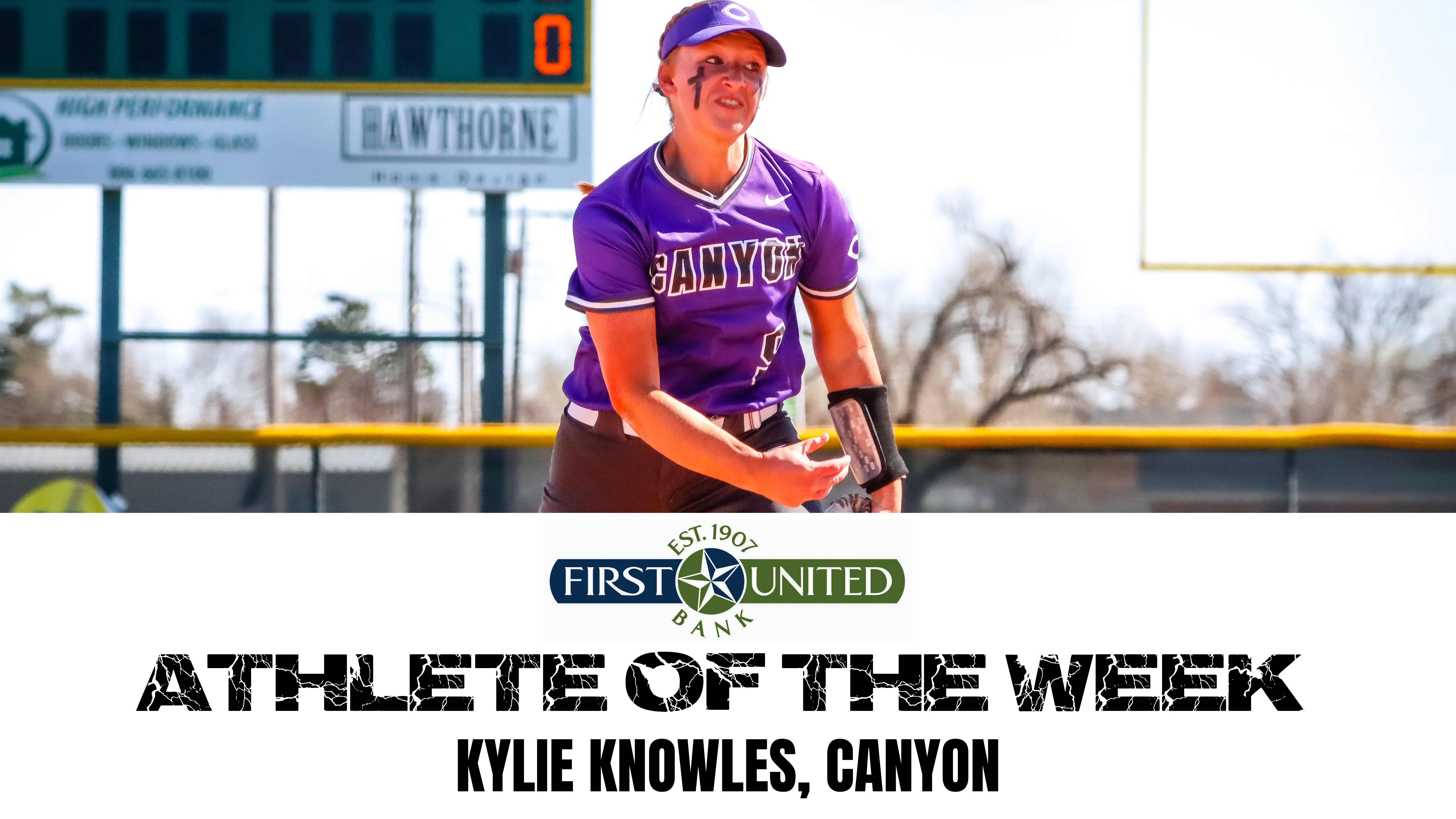 On the diamond: Knowles was absolutely stellar in the circle leading Canyon to a pair of wins against Pampa and Hereford last week. During a 6-2 win over the Lady Harvesters for outright first place in District 4-4A last Tuesday, Knowles threw a complete game, allowing one earned run with 10 strikeouts. In a 10-0 run-rule victory against Hereford on Friday, Knowles matched that effort by tossing a no-hitter over five innings with an eye-opening seven K’s. On the season, the hard-throwing junior is 14-7 with a 3.39 ERA, totaling 124 strikeouts. During district, Knowles is almost untouchable with a 6-0 record to go with a 1.07 ERA.