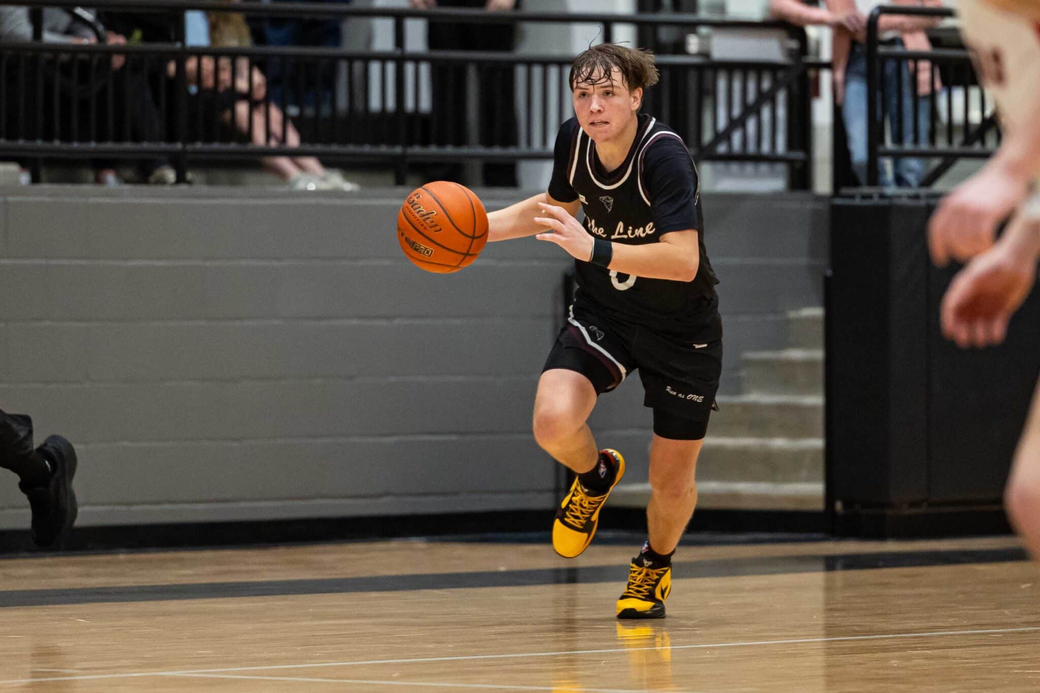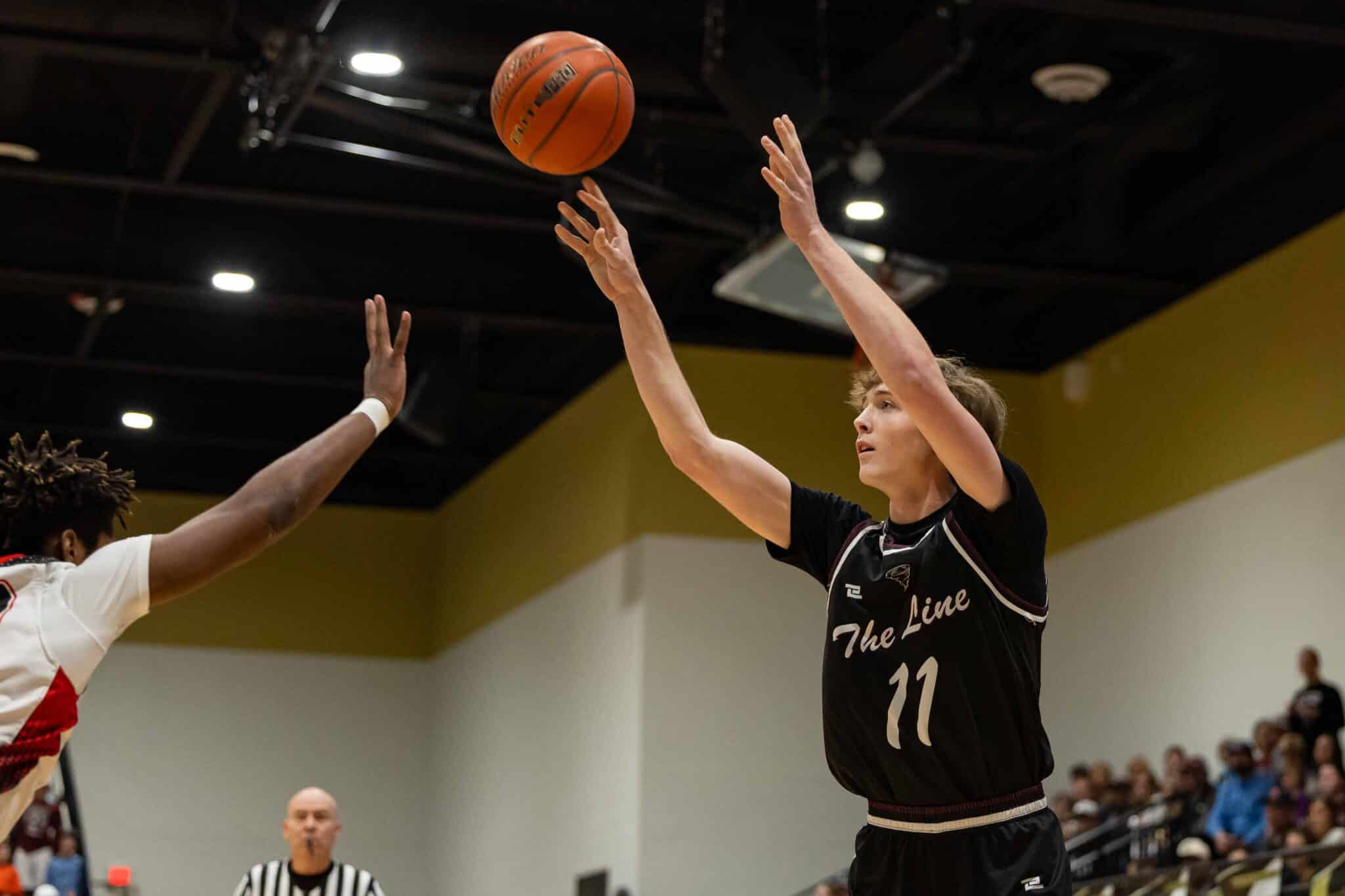 Texline’s Hadley Crisp fires a 3-pointer against Whitharral during a UIL Class 1A Division II regional semifinal game at Bushland High School on Monday night. [Roy Wheeler/ Press Pass Sports]