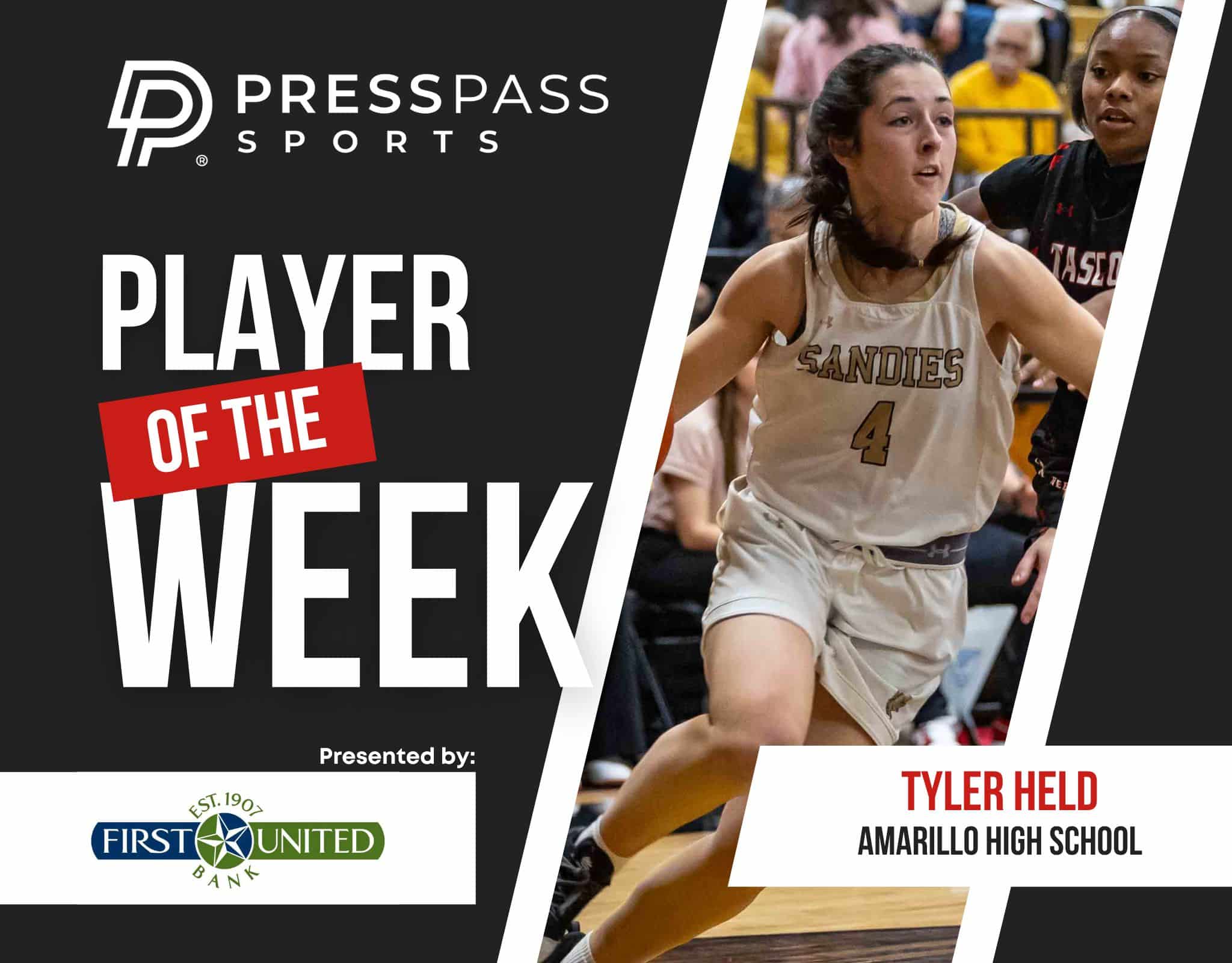 On the court: Held had one of those moments every athlete dreams of during a thrilling 39-38 win over arch-rival Tascosa during a key District 2-5A clash last Friday. With the Lady Sandies trailing at home 38-37 and only seven seconds left, Held took the inbound pass under the Amarillo High basket and weaved her way the length of the court, putting the ball up off the glass. It fell right before time expired for easily the two biggest of her team-high 10 points on the night.