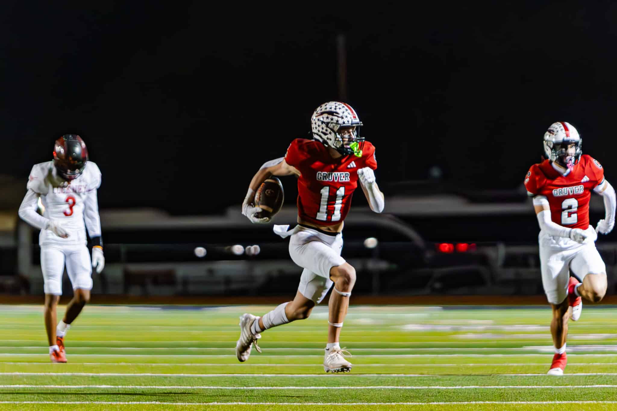 It’s all Gruver from the get-go, as the Greyhounds jumped out to a 26-0 lead by the end of the first quarter. At halftime, the red and black extended that lead to 55-0. By the start of the fourth quarter, Gruver held a 67-0 advantage.