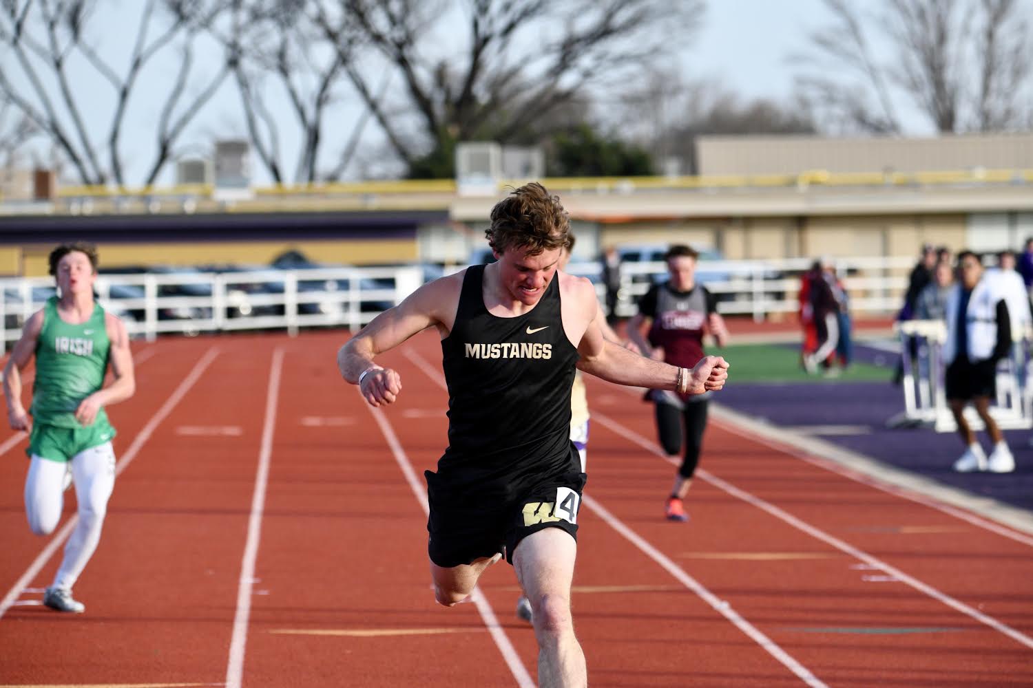 Wheeler’s Hesston Marshall crosses the finish line to win the 200 meter race at the District 2-2A Track and Field Meet last Week in Panhandle. [Tucker Stroud/ Press Pass Sports]