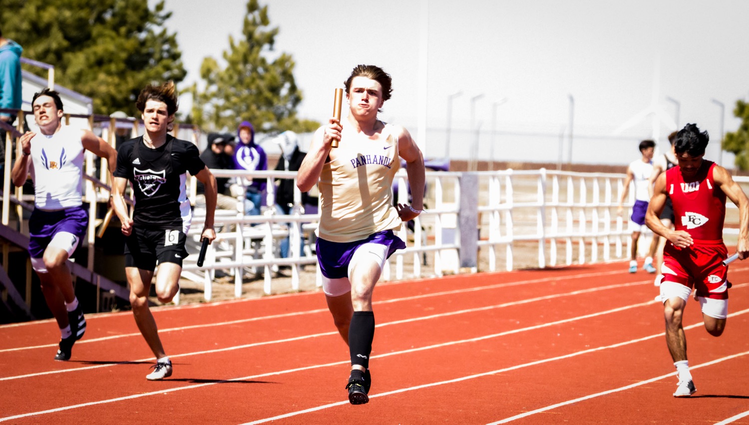 Panhandle’s Landyn Hack sprints up the track during the 400-meter relay at the 73rd Panhandle Relays last Saturday. [Ben Jenkins/ Press Pass Sports]
