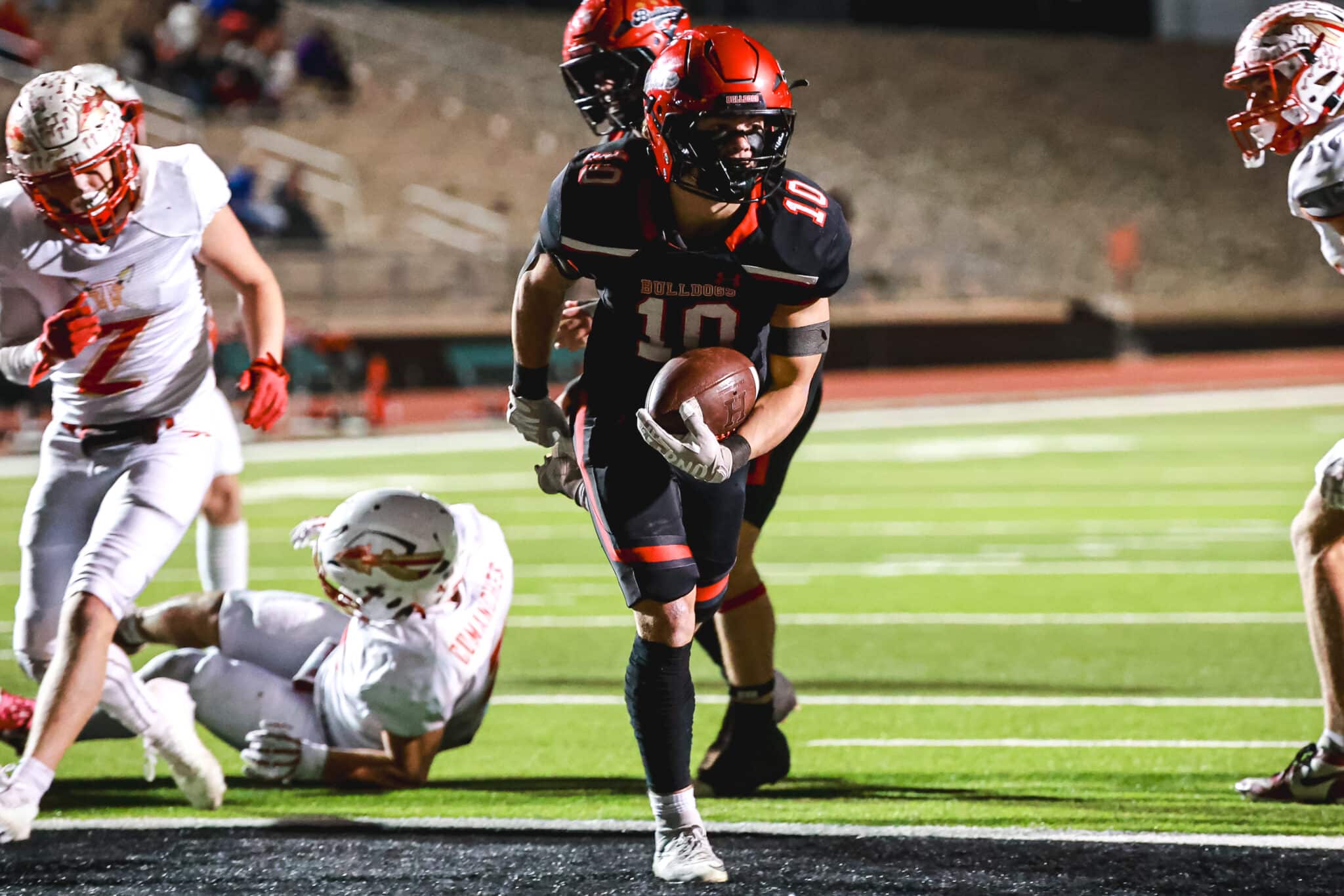 This is when the momentum flipped right back to Hamilton, not only for this play, but also for the rest of the game. On the two-point conversion, Comanche quarterback Cayde Winters fumbled the snap. Hamilton’s Colton De La Garza was right in position to scoop the fumble, turn on the speed and go 92 yards for a huge two-point swing. The two-point flip kept the Bulldogs up 16-12.