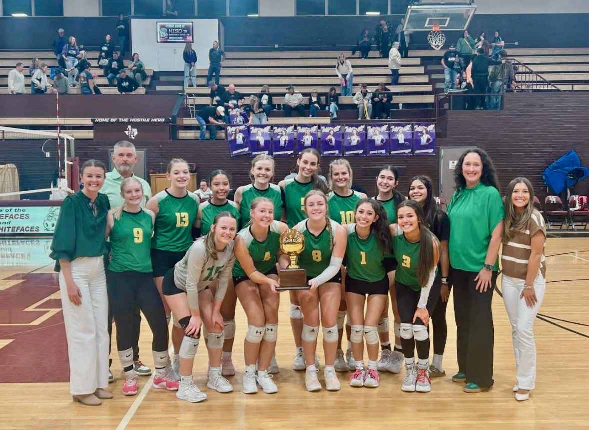 Emma Williams had the power knocking down 13 kills with Morgan Lucero adding eight kills. Allison Lovejoy ran the offense with 12 assists and Bryleigh Carr paced the defense getting 10 digs.