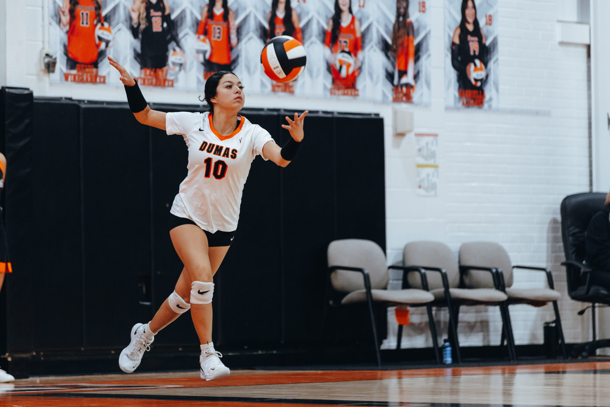 Sophie Clements was flat out incredible for Dumas through the entire match Saturday doing her job in all phases. Clements quarterbacked the offense passing out 29 assists, led the front row attacking the net for 15 kills and had 16 digs for a triple-double. If that wasn’t enough, Clements also served extremely well with five aces. Brooklyn Rose complimented Clements with 14 kills and Gabi Holt led the team with 26 digs.