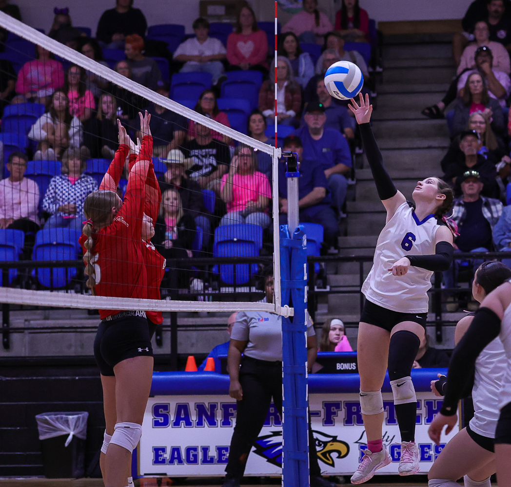 The Lady Eagles were able to get by rival West Texas High at home, 25-18, 25-14, 25-18. Emma Williams was key in the win with 13 kills and Faith Graves had a great outing on the front row with four blocks. Teammate Sydney Riggle chipped in 14 assists. Sanford-Fritch is 2-0 in district and 17-8 overall. The Lady Comanches (6-15) are now 0-2.