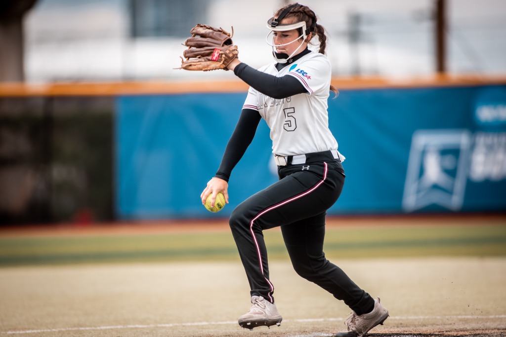 West Texas A&M’s Halle Lytal delivers a pitch against Biola during the NCAA Division II College World Series on Monday at the Regency Athletic Complex in Denver, Colo. [Trevor Fleeman/ Press Pass Sports]