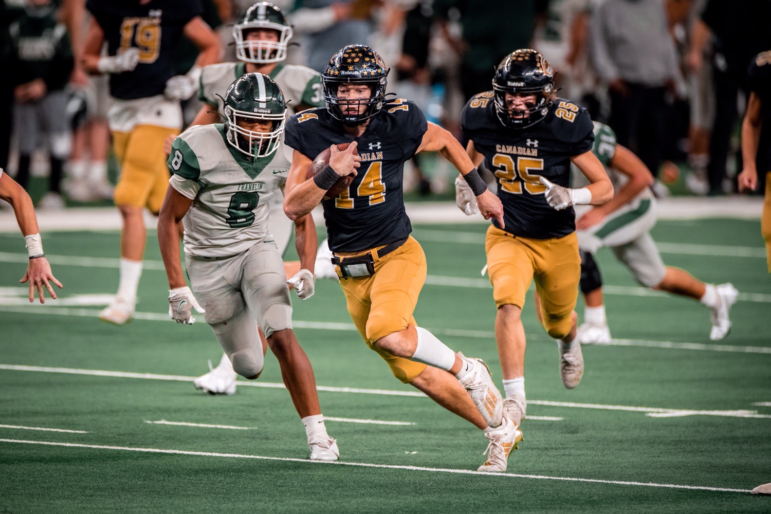 RUSHING— Franklin: Seth Spiller 18-139; Bryson Washington 11-72; Malcom Murphy 9-53. Canadian: Hufstedler 23-153; Culwell 12-120; Culwell 3-17.