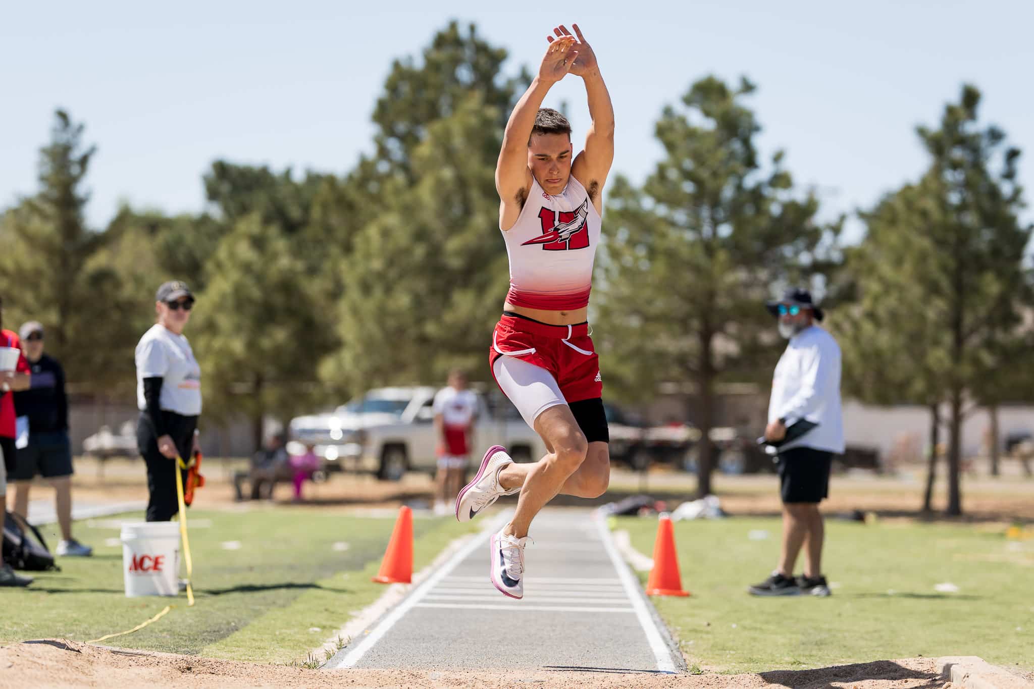Land started her morning taking gold in the long jump with a leap of 16.2 1/2 and then won the pole vault by clearing 9-feet. In the running events, Land turned on the jets to get back on the gold medal stand in the 200-meter dash with a time of 25.10 while getting two more golds as the second leg on the sprint relay (48.26) and the anchor leg of the mile relay that clocked a 4:13.79.
