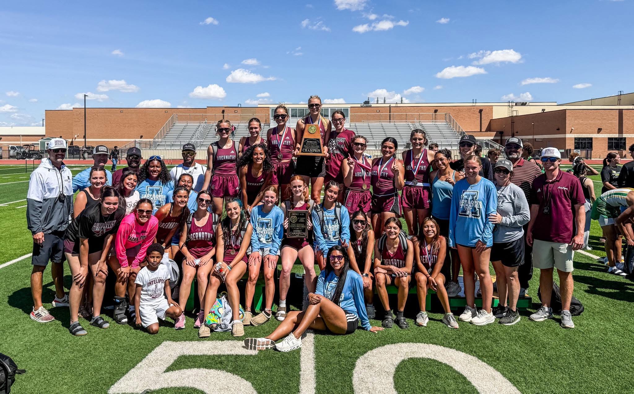 The Abernathy Lady Lopes and New Deal Lions are both team champions of District 4-2A following a two-day meet Thursday and Friday in Floydada.