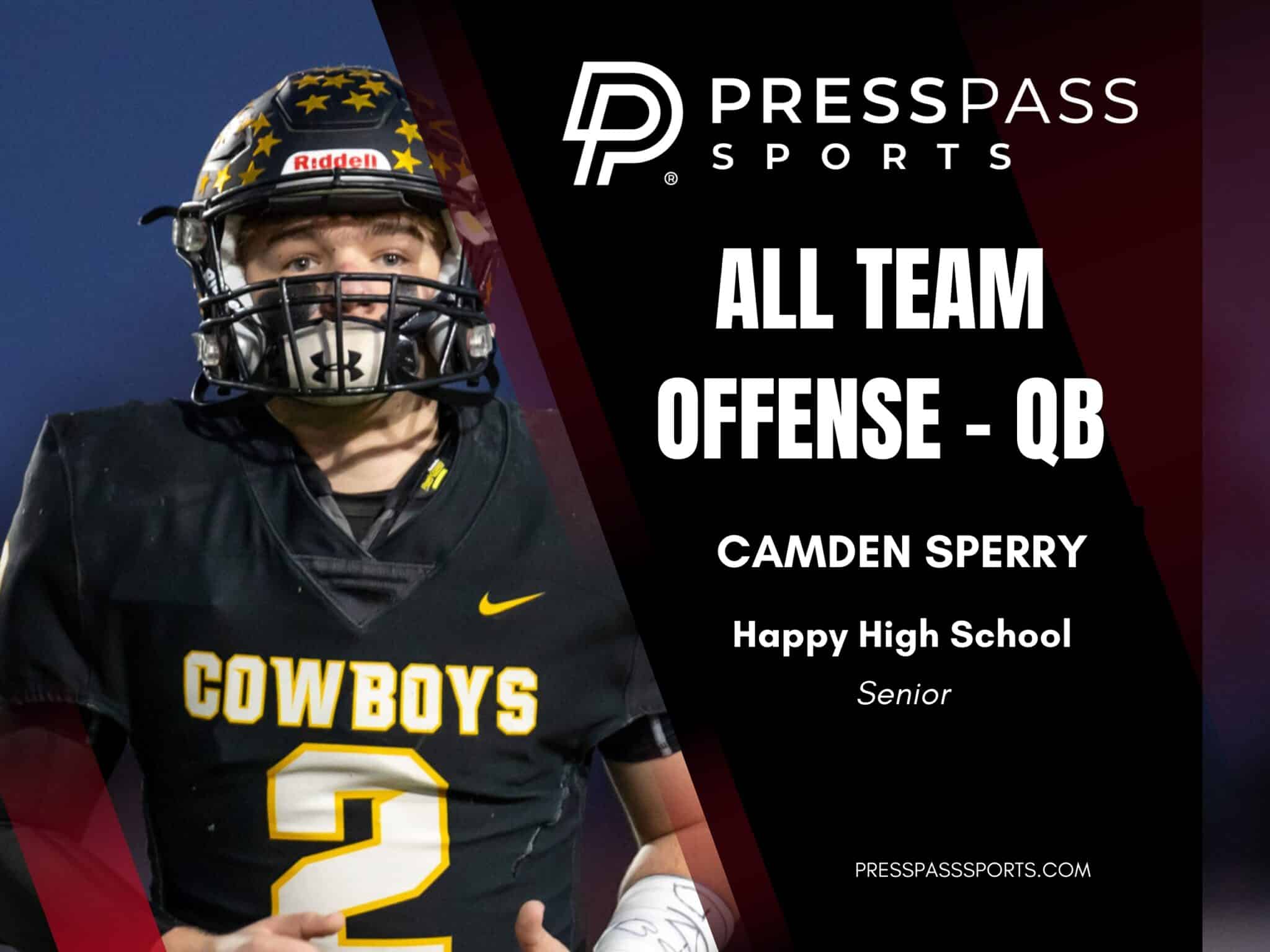 The top signal caller in the Amarillo-area and a two-time first team All-State choice, Sperry threw for 1,201 yards and 30 touchdowns with only four interceptions while leading the pass defense for the Cowboys with eight picks on the season.