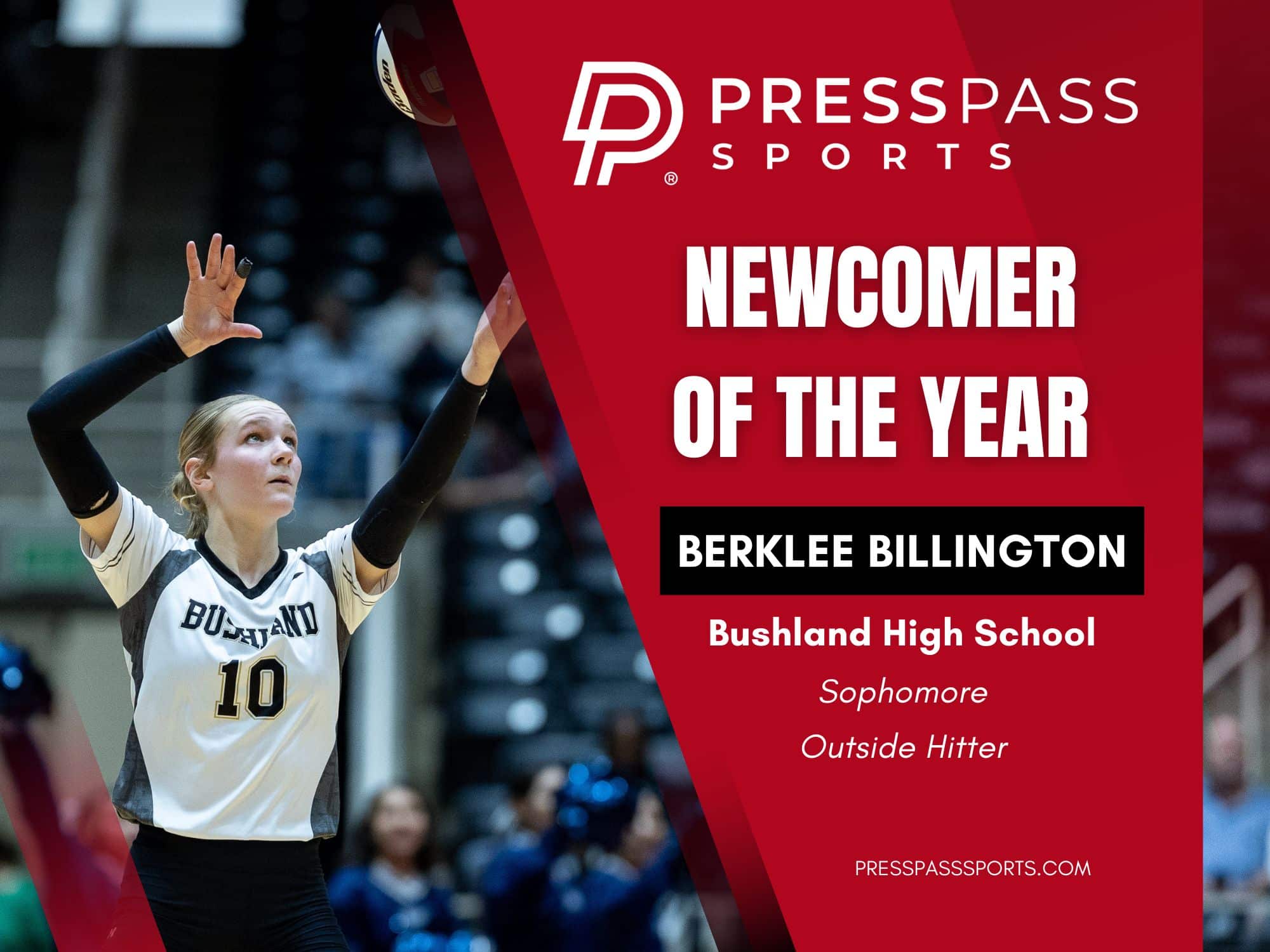 In early August, Billington went from a player to watch to a must-see player by the time the season came to an end in November. The sophomore made her presence known across the Texas Panhandle and the state with her leaping ability and aggressive swing. Billington did her part to earn tradition-rich Bushland another 40-win season and a sixth straight trip to the UIL state championship game. For her fantastic season, Billington earns the 2025 Press Pass Sports Newcomer of the Year and was also named the District 1-3A Newcomer of the Year. Billington ended her amazing season with an eye-popping 621 kills with a hitting percentage of .306, to go with 343 digs and 71 aces.