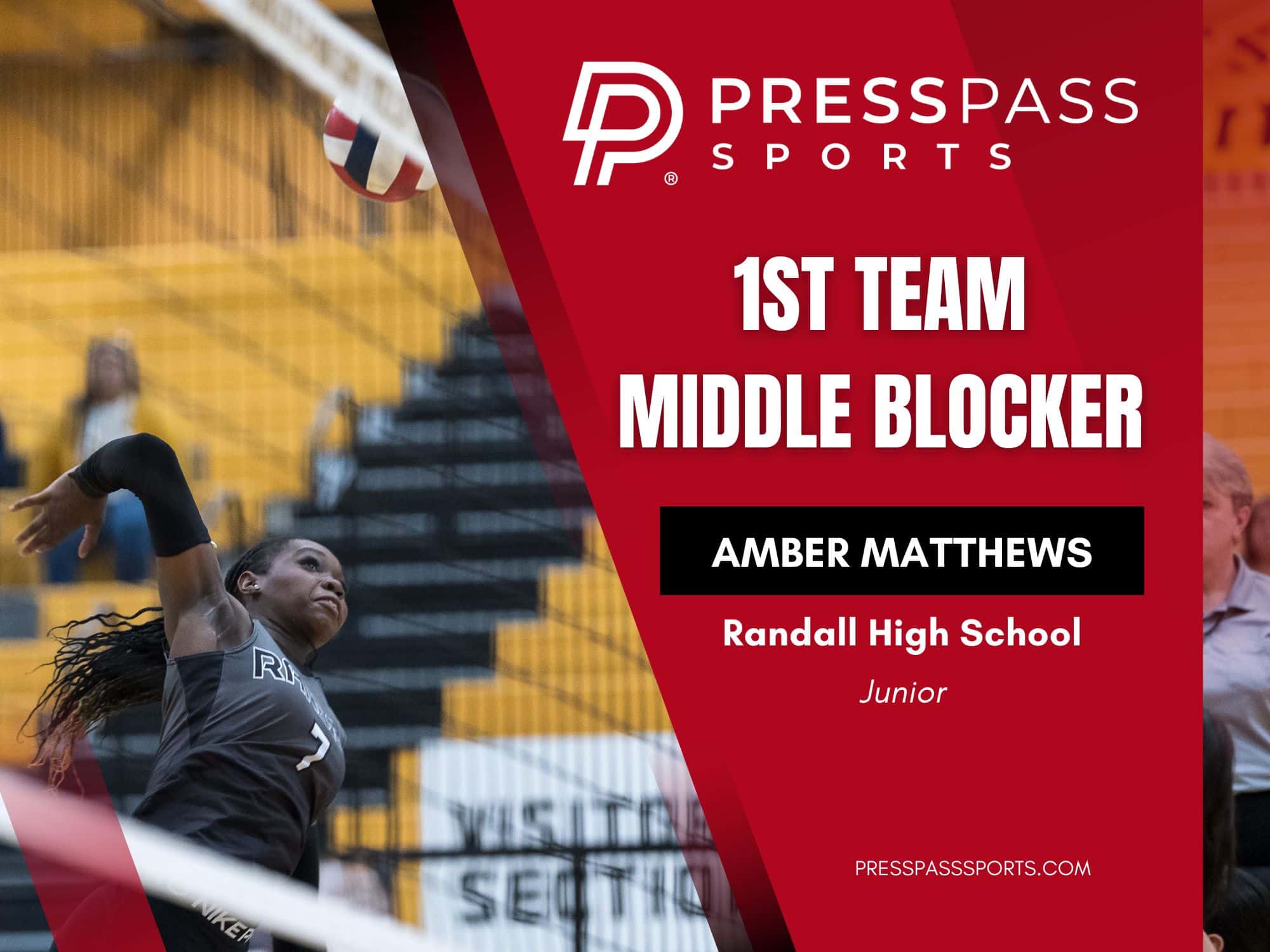 Last year’s Press Pass Sports Newcomer of the Year had another strong season for a very good Randall team loaded with youthful talent. Matthews, a first-team All-District selection, made her presence known at the net as one of two strong middle blockers, tallying 318 kills on top of 128 blocks.