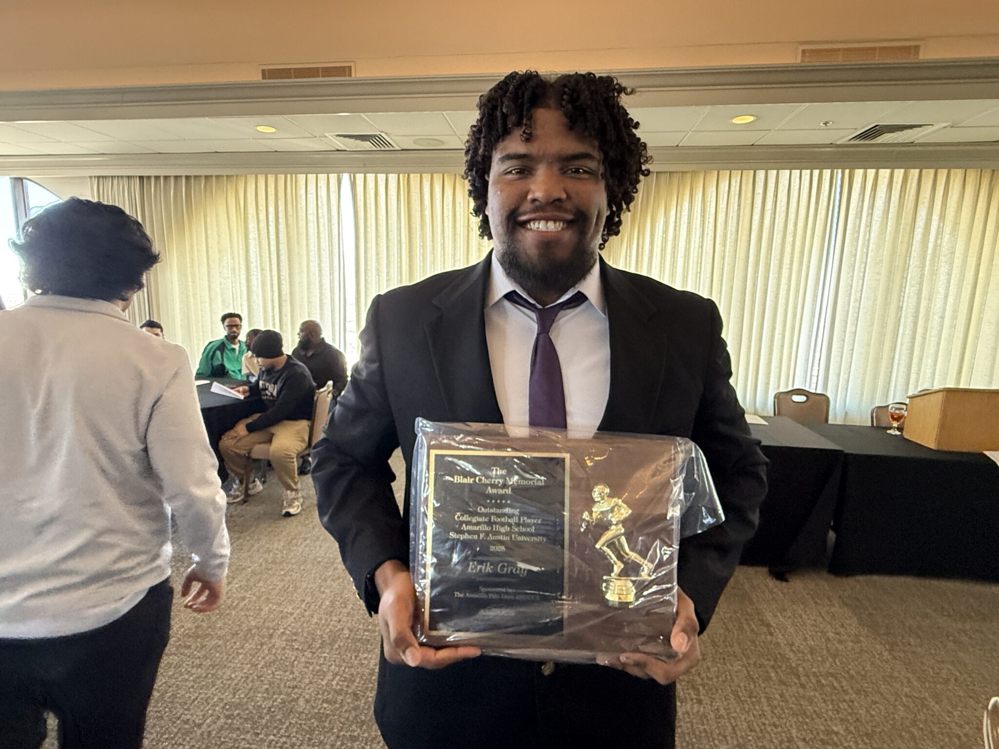 After moving to center from guard last season, Gray showed he belonged in just about every facet, as he was named the top offensive lineman of the year in the Southland Conference. Tuesday afternoon he was recognized closer to home, as Gray was named the winner of the Blair Cherry Memorial Award at the Amarillo Club in an honor given to the top college football player who graduated from an Amarillo-area high school.