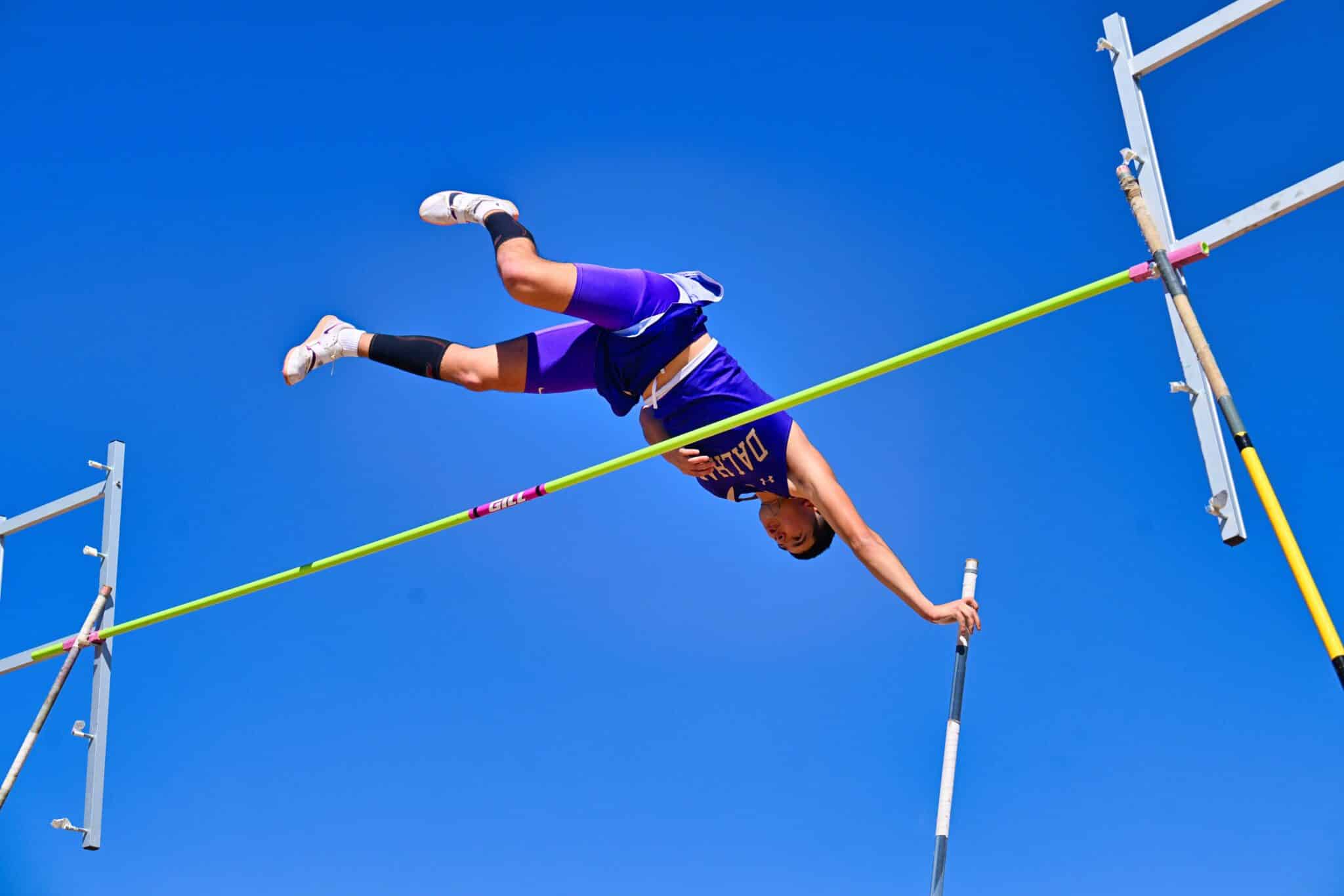 Dalhart’s Eli Garcia leads the Texas Panhandle by clearing 15-feet-6 inches in the pole vault event. [Tucker Stroud/ Press Pass Sports]