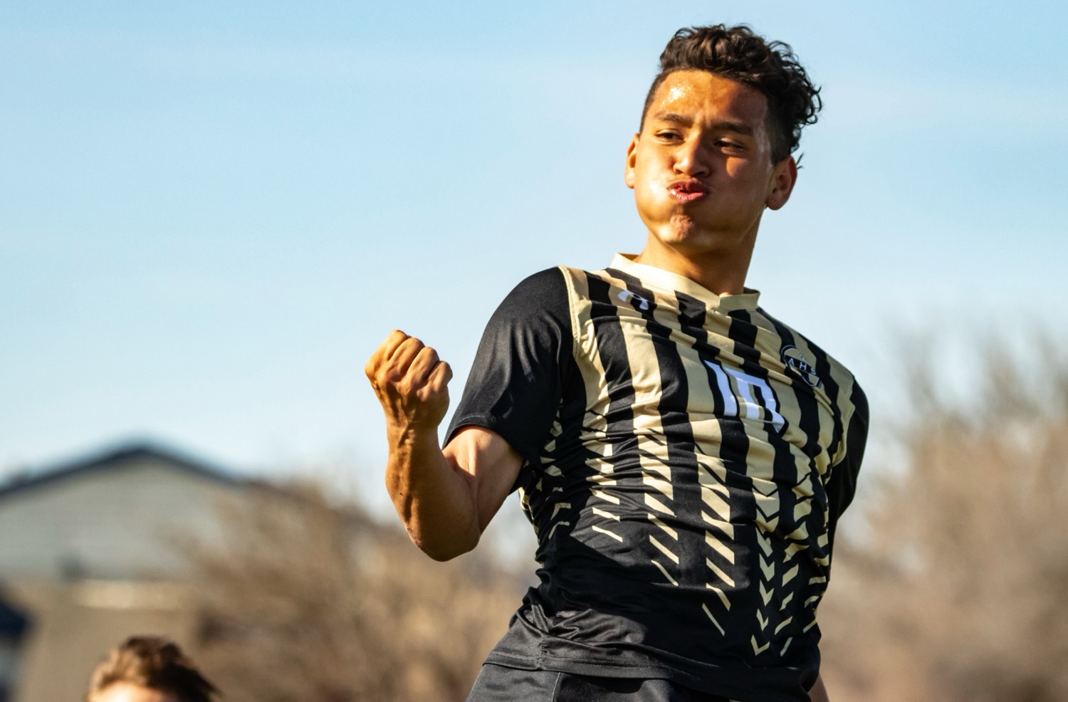 Amarillo High’s Jonathan Mani celebrates after scoring a second half goal against Lubbock High during a Class 5A bidistrict clash at the AHS Turf on Thursday. [Ben Jenkins/ Press Pass Sports]
