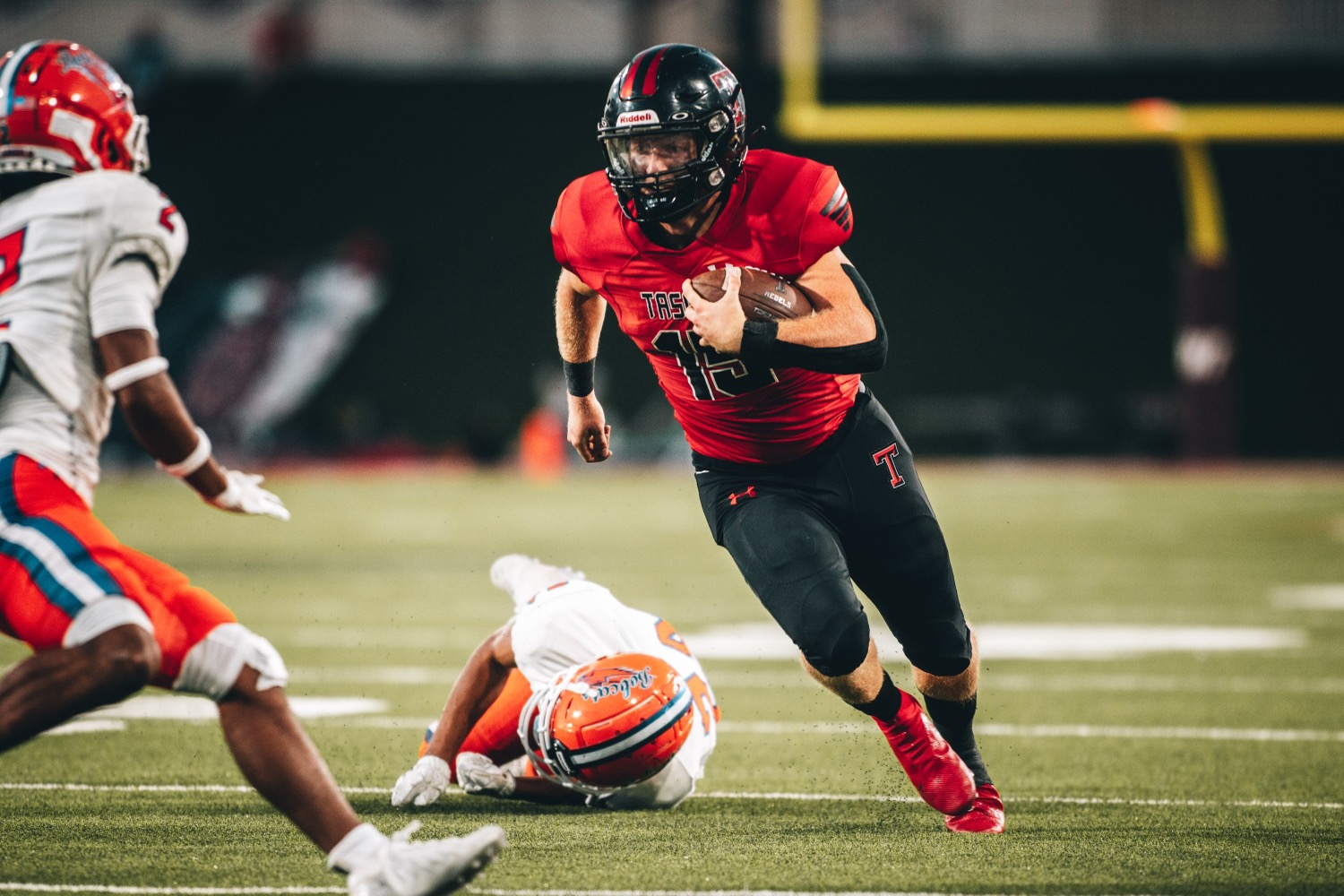The first half was a snapshot of a prototypical offensive evening for Tascosa, as the Rebels ran the ball successfully and often. They threw only one pass in the first half and didn’t punt in taking a 32-7 halftime lead.