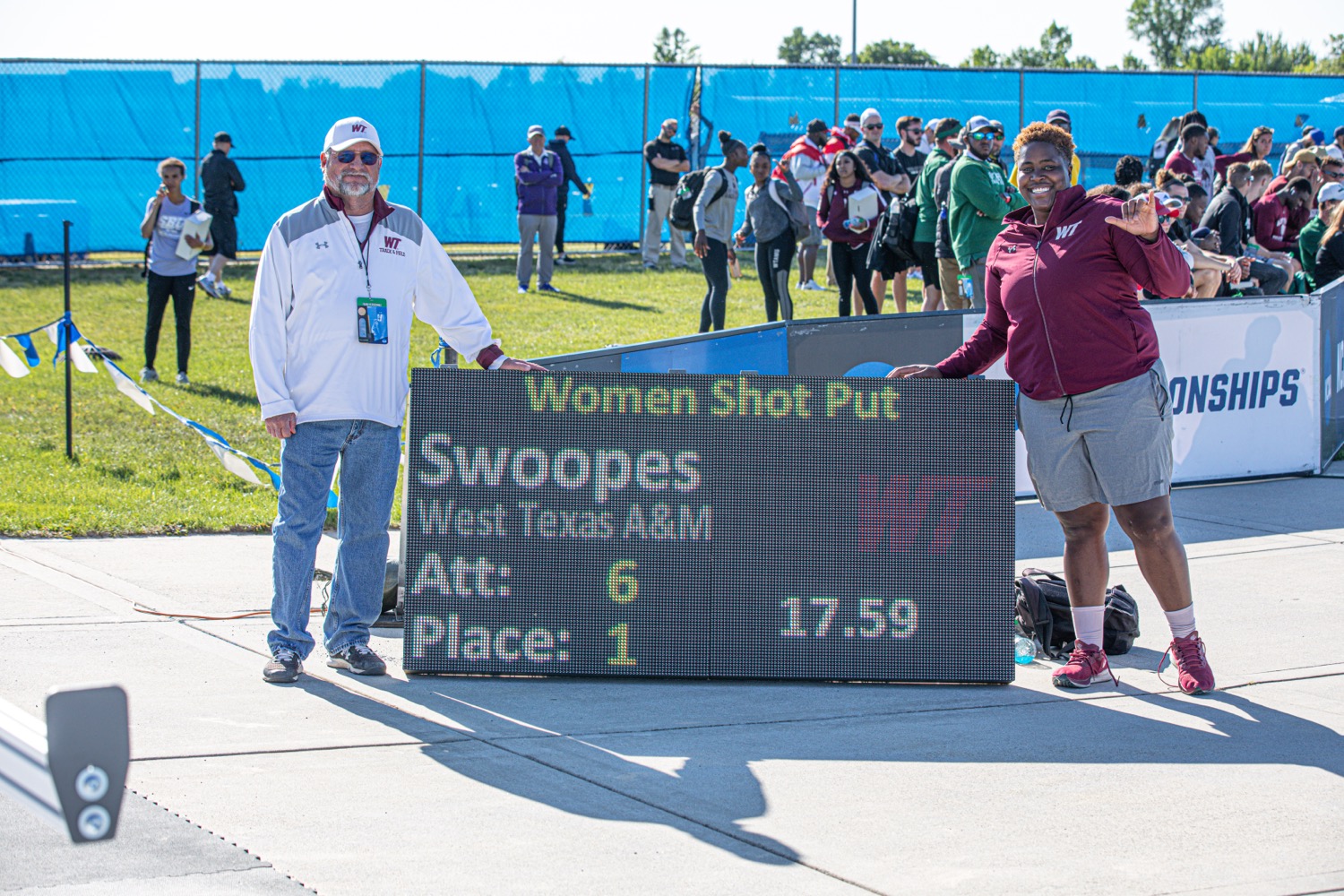 WT senior and Zada Swoopes won the national title in the shot put and discus Saturday. [Tyson Jex/ WT athletics]